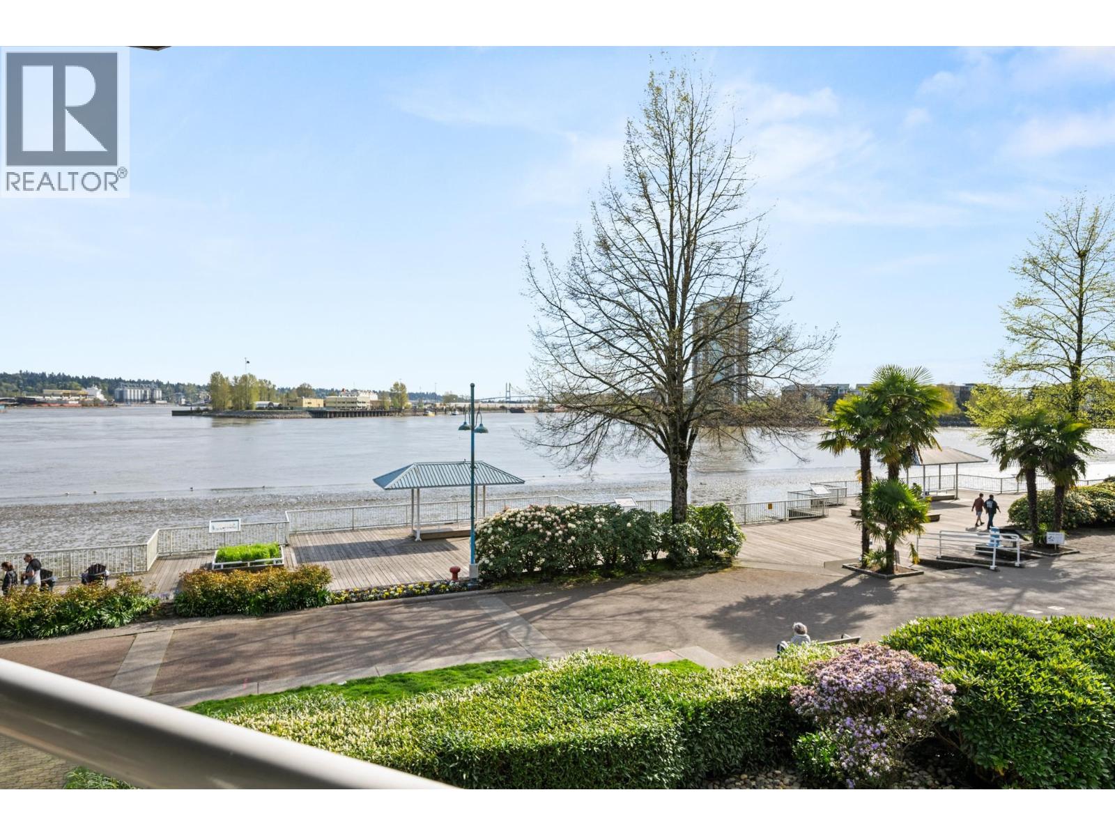 | OPEN HOUSE Sun Apr 26th 2-4PM! INCREDIBLE unobstructed Fraser River views from this 2 BDRM & DEN corner unit with private entrance, offering a charming, house-like feel. Spacious balconies create seamless indoor/outdoor living while overlooking the Fraser River & Boardwalk. Bright LR with cozy gas fireplace, floor-to-ceiling windows, sliders to the balcony & new laminate flooring. Separate DR space perfect for entertaining, functional kitchen with S/S appliances plus BONUS office or insuite storage. Grand primary BDRM with walk-in closet plus spacious 2nd BDRM with balcony access. Upgrades include UV window film, lighting, paint, laminate floors, washer/dryer, HW tank. Amazing location only steps to the Quay, Boardwalk, SkyTrain, restaurants, pubs, theatre & shopping. 2 pets ok-no size limit. BONUS 1x EV ready Parking Stall & Tennis Court. (id:5347) | |||