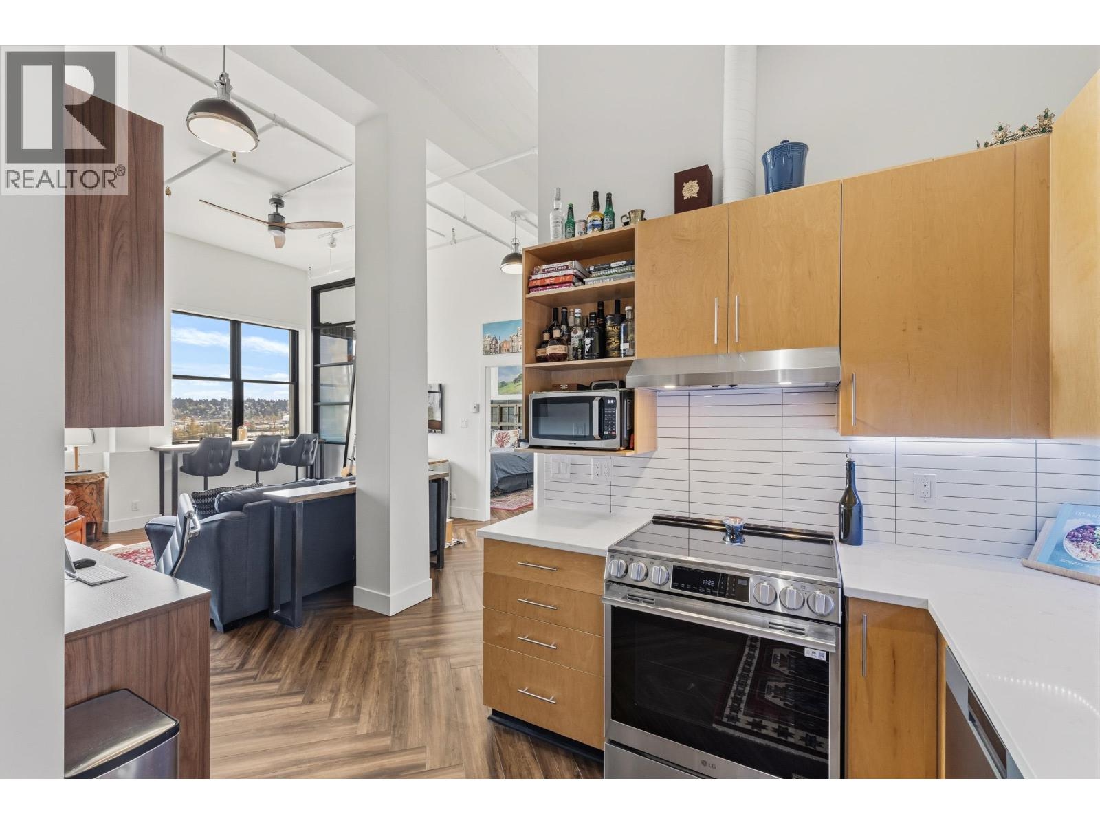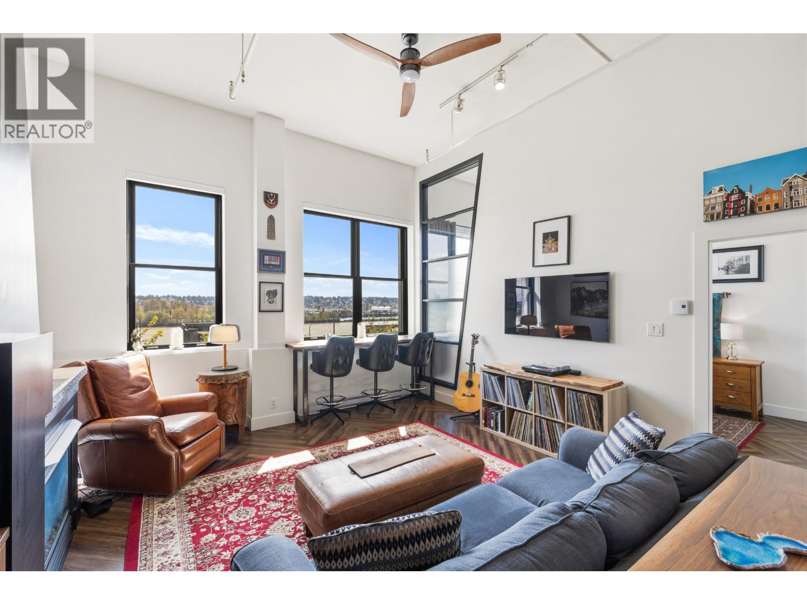 | Come join the C2C lifestyle! Enjoy spectacular Fraser River and City views from every window, showcasing breathtaking sunrises and serene full moon evenings. This exceptional END unit boasts towering 13 foot ceilings set in a beautifully preserved historic concrete building rich in character. This fully renovated home features massive windows that flood the space with natural light, a gas fireplace (included in fees) complemented by all-new SS appliances, designer lighting, floors, Quartz counters, fresh paint and ceilings. The new spa-inspired bathroom offers heated floors and an oversized tub for ultimate comfort. Enjoy a spacious WIC with abundant storage, and a new full size washer and dryer set, making this home as functional as it is stylish. A rare opportunity to own a truly exceptional property that seamlessly blends trendy modern upgrades with timeless charm. Step outside to vibrant Columbia St, NW Quay, Pier Park just a 4 min walk to SkyTrain. Everything you need is right at your doorstep! (id:5347) | |||
