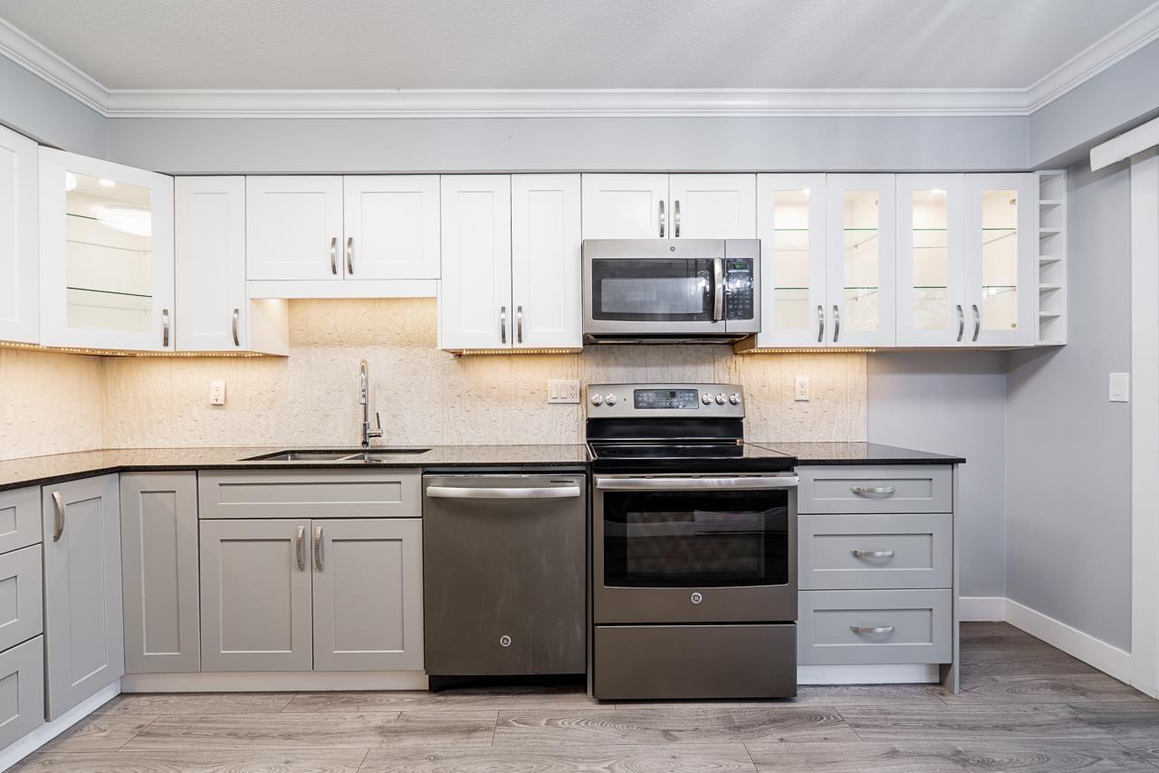 | Welcome to Willow Park Estates, a highly desirable 55+ community offering exceptional single-level living in a prime location just minutes from Willowbrook Shooping Centre This beautifully updated ground-floor home stands out with two spacious north & south facing patios and lush private garden areas, creating a rare indoor-outdoor lifestyle not often found in townhouse living. Renovated with tasteful modern finishes, modern neutral greys and crisp white trim, this home is move-in ready and shows with pride. Updates have been completed to every room, including white shaker-style kitchend & bathroom cabinets, matching matte stainless appliances, quartz counters throughout, updated one-piece toilets, and wide-plank laminte flooring throughout. Enjoy the convenience of being just a short walk to Willowbrook Mall, restaurants, medical and dental services, including LifeLabs. These private garden homes seldom come on the market in this sought-after community-view it before it's gone. (id:5347) | |||