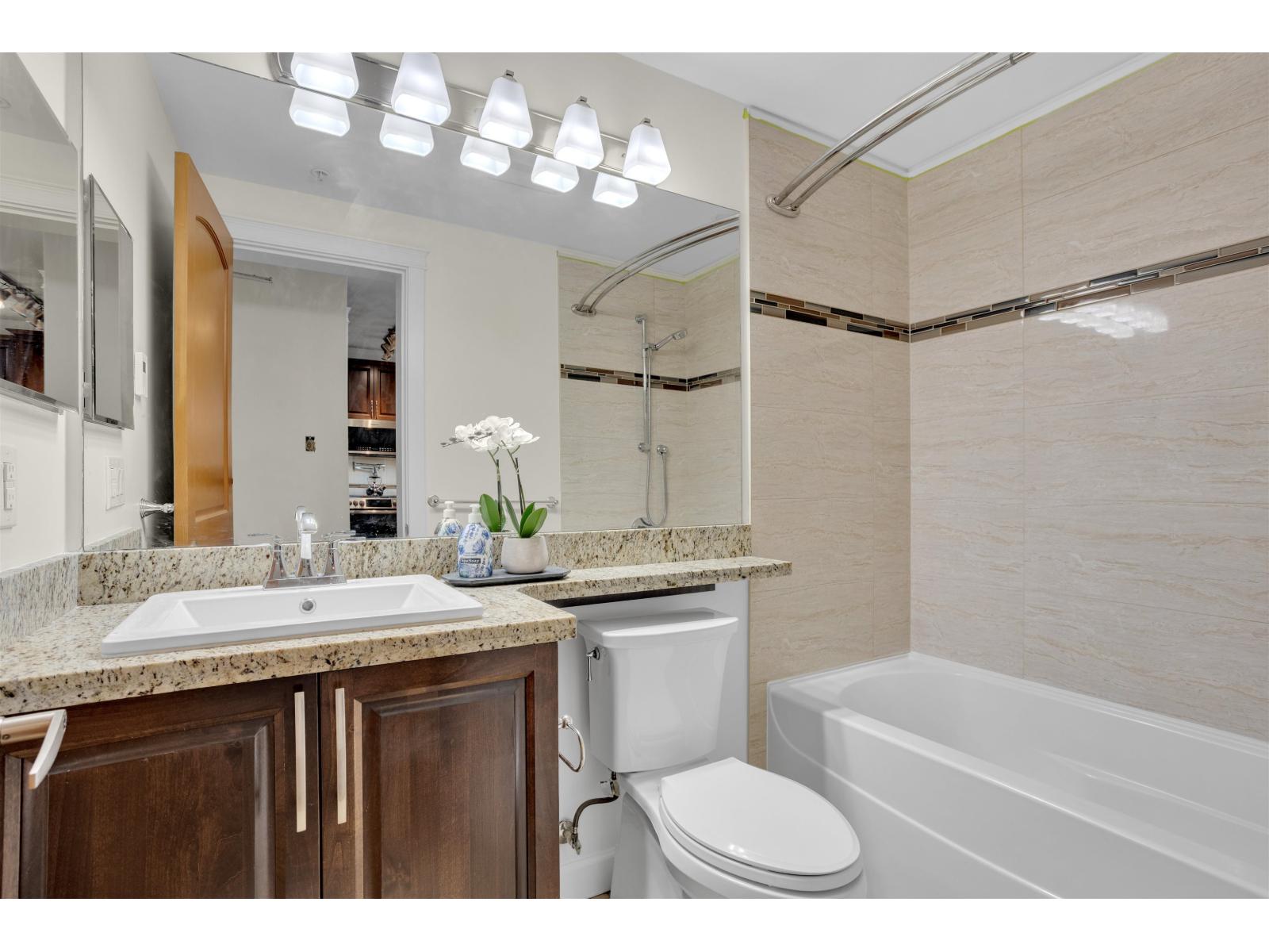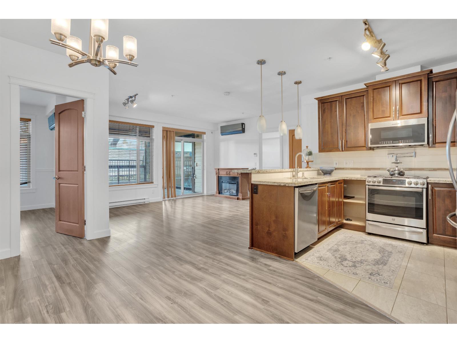 | Welcome to La Galleria built by Quadra Homes! Don't miss this one of a kind property. This 2 bedroom plus den & 2 bathroom condo will impress. This home offers approx 1061 sq ft of interior space, plus approximately 216 sq ft on the SOLARIUM/DECK for truly indoor outdoor living at one of the finest buildings in Abbotsford. Other features included laminate floors, heated tile floors, gas range, gas BBQ hook up, granite counters, S/S appliances, A/C, two parking stalls, high vaulted ceilings with grand windows. One of the best floor plans in the building. Great for first time buyers and investors. Do not miss this opportunity! Contact for more details. (id:5347) | |||